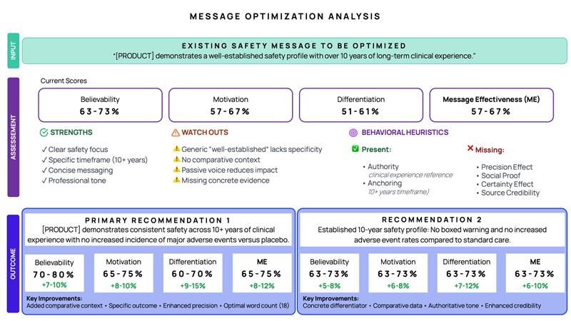 - Plot: Message Recall × Effectiveness framework, a proven method grounded in real-world HCP data. This framework moves teams beyond KPI reporting toward clear, actionable decisions about which messages to prioritize, optimize, or retire.